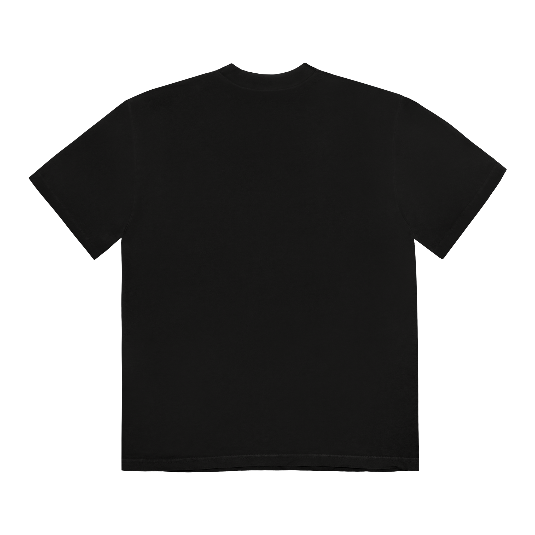 BLACK 5.3 OZ HEAVYWEIGHT COTTON TEE FEATURING SCREEN-PRINTED GRAPHICS ON FRONT.